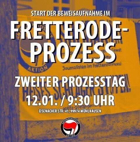 Kurz vor Weihnachten startete der zweite Anlauf im Fretterode-Prozess vor dem Landgericht in Mühlhausen. Am ersten Prozesstag wurde die Anklage verlesen, am Montag, den 12.01., sollen die Betroffenen ihre Zeugenaussagen zum Angriff machen.